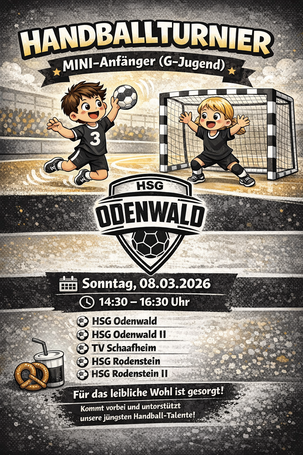 Die HSG Odenwald veranstaltet am Sonntag, den 08.03.2026, ab 14.30 Uhr ein G-Jugend Turnier in der Sporthalle Kirchbrombach.